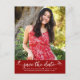 Make sure all your friends and relatives will be able to celebrate your daughter’s milestone graduation! Send out this girly, stunning, simple, modern, personalized photo “Save the Date” postcard for an event to remember. A fun, playful visual of white script handwriting and cute, playful hearts, along with her name, class year, and school, overlay a brick red band. On the front, add the photo of your choice and personalize the custom text with your grad’s name, school and class year. Your custom message and return address adorn the back. Matching invites, thank you cards, cap toppers, plaques and other graduation goodies are also available in this trendy and stylish collection. Guaranteed to add stylish fun to her special occasion!