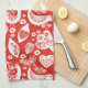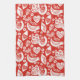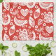 Red Scandinavian Christmas Pattern with Birds Kitchen Towel