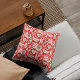 NewParkLane - Christmas Throw Pillow, with a traditional, intricate Scandinavian folk art pattern of flowers, hearts, birds, and Christmas ornaments in red and white.