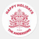 Red Scandinavian Folk Art Christmas Tree Classic Round Sticker