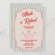 Red Script Blue Stripes QR Code Retro Wedding Invitation