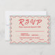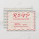 Red Script Blue Stripes QR Code Retro Wedding RSVP Card