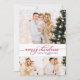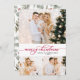 Red Script Greenery 3 Photo Collage Christmas Card