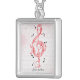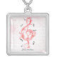 Red scrollwork sol note key custom necklace, featuring the sol note key in red scrollwork style and black notes.