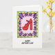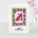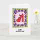 The front design shows a stylized high-heeled shoe centered on the card, colored deep red with black outlines that give it a confident, flirty look ❤️. A platform sole, thick heel, and a strap across the top are clearly defined, like a fashion sketch meant to catch someone’s eye. Around the shoe, a jagged starburst frame spreads outward from a soft pink center, adding a lively, affectionate energy as if it’s spotlighting a special person. Textured sections in purple and blue sit beside the pink, creating a cozy, friendly contrast that feels like a warm hug from afar 🌼. An outer border of lime-green stripes wraps the whole design, dotted with small pink circles for extra charm. Near the bottom, the words “HAPPY MOTHER’S DAY” appear in a flowing, decorative lettering style in dark ink, placed neatly under the main image. The background stays white with faint diagonal lines that add gentle texture without stealing attention. The border shows alternating lime-green stripes with scattered pink dots around the edges.