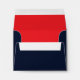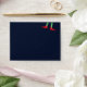 This dark blue envelope has a simple, funny design with elf legs wearing green & white striped tights and red elf shoes, with tiny jingle bells on the front and a bright, fun, festive, red on the inside.