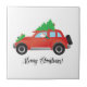Red Siberian Husky in Christmas Car Tile