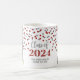 Customizable photo template class of 2024 graduation mug with silver and red confetti pattern.