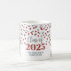 Customizable photo template class of 2025 graduation mug with red and blue confetti pattern.
