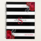 Red Silver Floral Monogram Black Stripes 2024 Planner