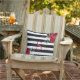 Red Silver Floral Monogram Black White Stripes Outdoor Pillow