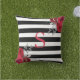 This cushion turned out exactly as shown online. The colors are true as shown and the design is perfect. It is durable and shows no sign of fading after being in bright sunlight for a few weeks. Although this pillow is an outdoor cushion, the fabric is soft and can easily be used indoors as well. The printing of this product is perfect. I love how this is a reversible pillow with fun colorful cocktails decorating one side and the other side is decorated with the same cocktails and palm leaves, giving it a bit more versatility. I also love how this pillow coordinates easily with other cushions in the outdoor pillow collection of prettyfancypillows.