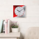 Red & Silver Modern Metallic Geometric Design Square Wall Clock
