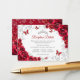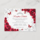 Red silver Quinceanera reception details enclosure cards. Features, script font, silver butterflies, watercolor roses and tiara. Perfect for an elegant princess style glam celebration. Personalize with your own details.