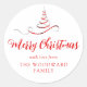 Red Silver Ribbon Tree Merry Christmas Script Classic Round Sticker