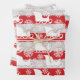 Celebrate the magical and festive holiday season with our custom holiday wrapping paper sheet. Our holiday design features our red and faux silver stripe background with white snowflakes and reindeer sleigh. All illustrations contained in this bold and modern red and silver reindeer sleigh Christmas pattern are hand-drawn original artwork by Moodthology.