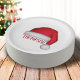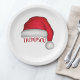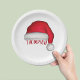 This design features a red Christmas traditional paper plate, Santa Claus hat watercolor, holiday entertaining, Christmas party supplies, a cute holiday typography, custom customized personalized name, a classy simple minimalist minimal, custom holiday party decor, a Christmas Santa Claus hat, perfect for dinner dessert hor d'oeuvre appetizers