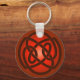 This circular motif on a glowing red background uses the Celtic Knotwork technique, where a single continuous loop of ribbon is interlaced to form an intricate pattern.