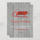 Rustic look flat style Christmas greeting card done in a weathered wood fence look, with a red foil looking sled, on the top of the card. Red foil look graphic text reading Happy Holidays, decorates the bottom half of the card, along with red and white custom text ready to personalize with your companies name. A logo area is available, at the bottom of the card, to replace with your business' logo, if not needed just delete logo field.