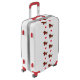 Red smooth haired Dachshund Luggage Suitcase. Doxie puppy is delivering a heart. Cheery and Whimsy and funny Dog Art created by Naomi Ochiai from Japan. Cute Dachshund cartoon design for dog lovers who love Doxie!!