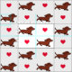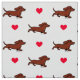 Red smooth haired Dachshund puppy pattern Fabric. Doxie running with twinkle eyes. Cheery and Whimsy and funny Dog Art created by Naomi Ochiai from Japan. Cute Dachshund cartoon design for dog lovers who love Doxie!!