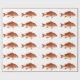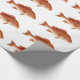 This wrapping paper includes a repeating pattern of red snapper fish. One of North America's most popular fish, the red snapper is found along the Atlantic Coast and Gulf of Mexico. Red snappers are prized by chefs and other cooks for their orange-pink color and mild flavor.