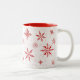 Unique, hand-drawn using digital art, these big red snowflakes spread all the way around a white cup with tiny sprinkles of snow in the background. Red is a favorite color for Christmas, and this mug will make up beautiful gift for Christmas, or anytime this winter!