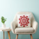 Red Snowflake Ice Crystal Flower Pattern On White Throw Pillow