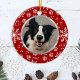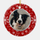 Red Snowflake Paw Pattern Pet Photo Ceramic Ornament