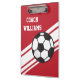 This fun design features white diagonal stripes with a soccer ball. The background is red. I have this design available in a variety of colors. If you don't find what you're looking for just message me. Personalize the front and back with a name, team, phrase or quote. These clipboards are great for a soccer player, coach, physical education teacher, gym teacher, little league coach, or sports athlete. They make great teacher appreciation or holiday gifts.