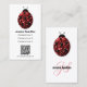 Red sparkles Ladybug QR code Monogram white Custom Business Card