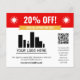 Special offer discount flyer for your small business with a red banner at the top combined with a smaller yellow banner and bold white fonts. Special offer discount flyer personalized with your logo, QR code, and custom text.