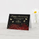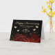 Elegant, stylish custom text Happy Anniversary card with red ink splash gold glitter black background, modern handwritten script typography, love arrow element and beautiful butterflies. A warm and sincere greeting card that is perfect for celebrating a special occasion such as an anniversary. Personalize this design by changing the message and your name, making it a unique gift for your family or friends.