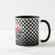 Red Sport's Car, White Name, B/W Checkered Mug