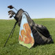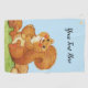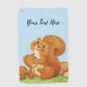 This golf towel has a cute red squirrel with a fluffy tail and rosy cheeks about to eat his stash of nuts and acorns while sitting in green grass under a blue sky. Customize your text with the template.