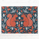 Two red squirrels in a forest of acorns, oak leaves, pine cones and berries. Original art by Nic Squirrell.
