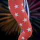 White stars on red on one leg and blue and white stripes on the other. Fun summer leggings!