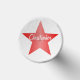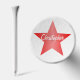 This star design golf tee is a small peg, made of wood and is used used to elevate a golf ball slightly off the ground for the first stroke on a hole. Its purpose is to allow the golfer a cleaner strike and potentially greater distance and accuracy. Tees are inserted into the ground with the ball resting on top. Red star design golf tee.