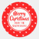 Sticker holiday gift tags with a red stars background. The "Merry Christmas" greeting and who it is from can be changed.