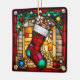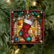 Red Stocking Faux Stained Glass Customizable Ceramic Ornament