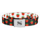 Red strawberry fruit pattern custom reversible Belt. Personalized belt with custom name initial monogram on the buckle. Modern custom color belts for men and women. Match colors to any outfit. Double sided print with fruity design. Cool Birthday gift idea for friends and family. Black and white example.