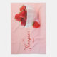 Red Strawberry Fruits On Pink With Family Name Kitchen Towel
