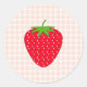 Red Strawberry on Gingham Check. Classic Round Sticker
