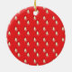 Strawberry pattern. In a strawberry red background sit tiny, light colored, strawberry seeds. This item features an image of a red strawberry pattern. The digital art image of a strawberry pattern on this item is a flat, printed design, not raised or textured.
