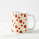 Red strawberry pattern on pale pink coffee mug
