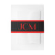 Red Stripe Monogram Initials on Black Invitation Belly Band