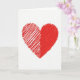 This card shows a large red heart centered on a plain white background. The heart is split into two different fills, which makes it feel thoughtful and a little like two people coming together. On the left side, the red is made with long diagonal strokes, and you can see small bits of white peeking through. On the right side, the red is packed in with shorter, mostly sideways lines, so it looks darker and more solid. The textured marks look like they were drawn with a marker or crayon, giving it a warm, honest feel ❤️. There isn’t any text on the front, so the simple image leaves room for your own words and makes the message feel more personal 🥰. It’s a meaningful card to give when you want to say “I care about you” in a straightforward way.