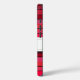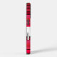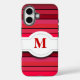 iPhone 16 Case with customizable monogram template and red stripes background; red and white bright retro design