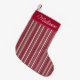 A lovely personalized christmas stocking with your name across the top, featuring a red striped pattern.