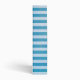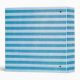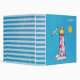 A binder with a nautical theme. Designed on a coastal blue background with a red striped lighthouse and a beach ball. A smiling sun and flying seagull off in the distance. A blue striped pattern on the spine and back flap.